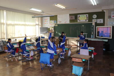 道徳の授業では、「命をつなぐ」という題名で屋久島の縄文杉(やくしまのじょうもんすぎ)について学習しました。担任の先生が教科書を読んだ後に、電子黒板で実際の画像を示しました。児童は、画像を見ながらその大きさに驚いたり、数千年という歴史に思いをはせたりしながら、縄文杉がつないできた歴史を踏まえて考えを発表しました。