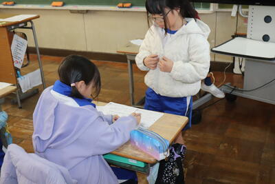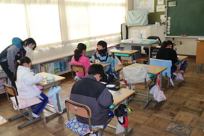 先週に引き続き卒業プロジェクトの一環として、6年生が「思い出給食」を行いました。4人ずつ5グループに分かれて1年生から5年生までの各教室を訪問し、一緒に給食を食べました。食べている様子では、班ごとに和やかに会話をしたり、楽しくしりとり等をしていてどのクラスも楽しそうでした。あと1回でこの企画は終わりですが、まだまだ卒業まで他にもいろいろな企画があるので、6年生にたくさんの思い出をつくって欲しいと思います。