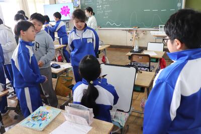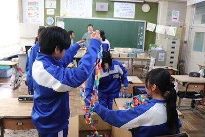 総合的な学習の時間(若鯉タイム)では、卒業プロジェクトに取り組んでいました。グループやペアに分かれて、話合いを行ったり、プレゼントや装飾品を作製していました。