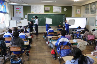 1年生の算数の授業では、復習問題に取り組んでいました。担任の先生が準備してくれたプリントの問題に集中して取り組みました。2年生の学級活動の時間では、レクリエーションについて話し合いました。レクの内容について積極的に意見を発表していました。