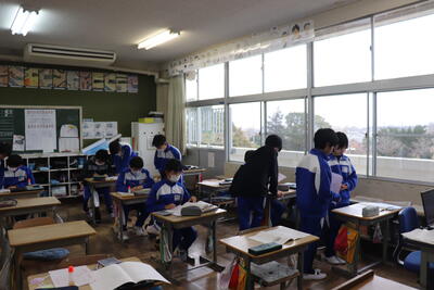 がんばりタイムでは、今日行われる千葉県標準学力テスト2日目の教科などに取り組んでいました。朝の会では、元気な歌声が響いていました。6年生は卒業式に向けて呼名練習を行い、はきはきとした返事をしていました。(さすがです!)外は大雨ですが、北小は今日もいいスタートが切れました。