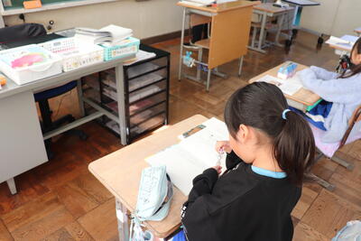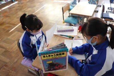 「はたらくじどうしゃ」のまとめを行いました。それぞれプリントにまとめた内容を読み合い、相手に伝わるように修正等をしました。その後、原稿用紙への記入に取り掛かりました。それぞれの児童が興味をもった車について作文が完成したらぜひ読ませてもらいたいです。