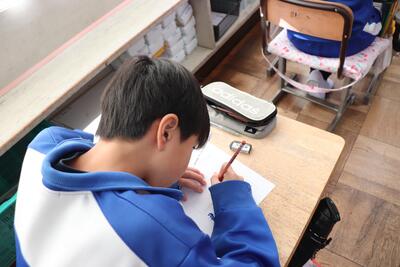 「白神山地」の内容について学習しました。今日は、児童各自がこの学習を通して自分の考えをノートにまとめました。意見文として教科書の提言に沿った内容を意識しながら書いていました。