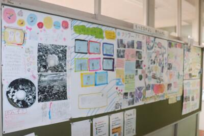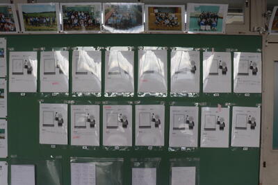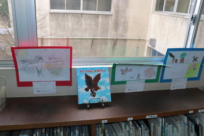 図書室には、児童が作成した本の紹介コーナーができました。生活科室前には、町探検コーナーができていました。昇降口には体育委員が取り組んでくれた新聞棒投げ選手権の最終結果が掲示されていました。あるクラスの「今年の漢字」は協力の「協」が多く選ばれていました。(校歌の「こころを協(あわ)せ」のように「なかよく」できたのでしょう)また、若鯉池の鯉も餌に気付いて出てきました。