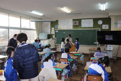 総合的な学習の時間では、授業参観に行う内容について話し合いを行いました。趣旨を踏まえた上で、たくさんの意見が出ていました。その後、近くの友達と相談するなど、話し合いを重ねて行うものを決定しました。