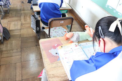 音楽の授業では、「おもちゃのチャチャチャ」などの合唱や「きらきら星」の合奏を行いました。「おもちゃのチャチャチャ」は、全身でリズムをとりながら手拍子を入れて歌い「きらきら星」は、自分の席で担任の先生のオルガンに合わせてしっかりと合奏しました。