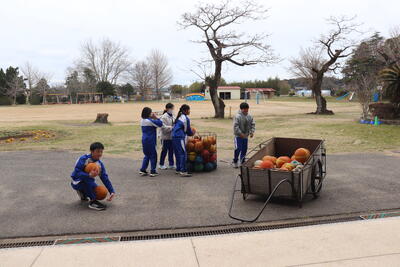 総合的な学習の時間では、自分たちが今年度栽培をして使った畑の整理をしました。マルチシート(黒いシート)や園芸支柱を片付けました。さすがは5年生、声をかけあって畑をきれいに戻しました。また来年度も作物を栽培することができます。