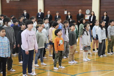 本日、新たに9名の先生方をお迎えして令和8年度香取市立小見川北小学校の活動がスタートします。校長先生の紹介後、お1人ずつご挨拶をいただきました。始業式では、校歌の後、校長先生から「高学年を中心に、自分たちで目標を決めて、チャレンジしてほしい」というお話がありました。内容として、「昨年度新たに始めたことの継続や今年度学校を楽しくよくするために行いたいこと」をすすめて欲しいということでした。そして担任の先生の発表がありました。始業式後、早速新リーダーである6年生が、体育館の後片付けや下学年の各教室へ教科書等を運んでくれました。(さすが6年生!!)新しくお見えになった先生と明後日入学する1年生を加えた全校児童85名で力を合(協)わせて、さらに楽しい学校にしていきたいと思います。みなさん、頑張っていきましょう。