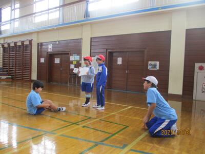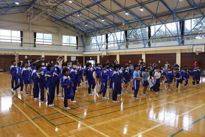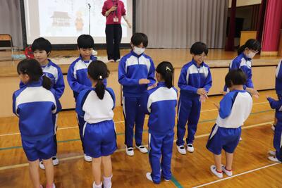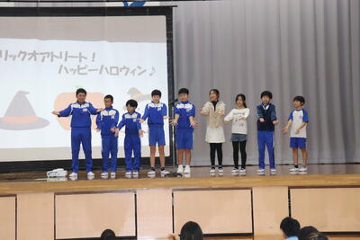 5時間目に体育館で歌声集会が開かれました。はじめに今月の歌である「もみじ」を二部合唱で歌いました。その後、異学年でペアを作って「お寺の和尚さん」をしました。ジャンケンで勝つたびに喜びの声があがりました。最後に「ハッピーハロウィン」ということで「3時のおやつ」をもとにリーダーの掛け声で3つのポーズから1つを選び重なると負けで座る勝ち残りゲームを行いました。2回行って2回とも3年生の児童が勝ち残りました。(3年生強い!)大いに盛り上がったハロウィンの日の歌声集会でした。担当の先生、協力員の児童の皆さんお疲れ様でした。