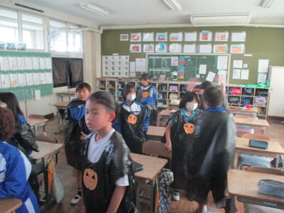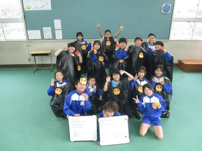 学級活動の時間では、今日がハロウィンということで、クラスで企画していた「ハロウィン・レク」を行いました。レク係を中心に宝探しなどで楽しく活動することができました。