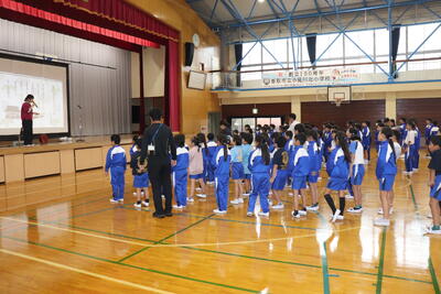 本日、なかよしタイムの時間に陸上部の解散式が行われました。男子と女子の代表である6年生から、それぞれ感想などの話がありました。最後に顧問の先生から、大会までの練習のことや当日のみんなの頑張りについてお話がありました。6年生からの思いを引き継いで、5年生や4年生が中心となって来年の陸上大会も頑張りましょう。