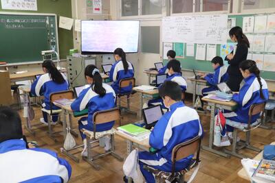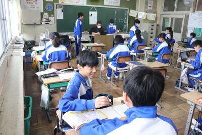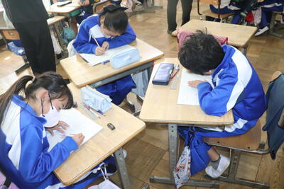 国語の授業では、「12歳の主張」という内容について学習しました。すでに一人一人が自分の主張したいテーマについてよく調べ、まとめていました。テーマとしては、「熊による被害」や「温暖化による災害」、「リチウム電池の発火事故」や「交通事故」等、ニュースで話題となっている内容について、結論までをまとめていました。発表が楽しみです。