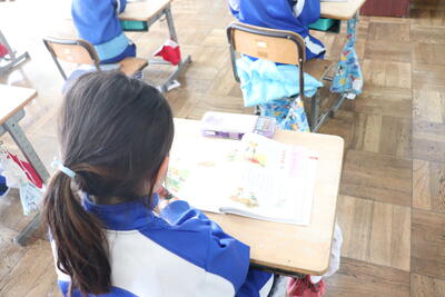 国語の授業では、「アレクサンダとぜんまいネズミ」という内容を学習しました。登場人物の心情をつかむために、読み合わせを行いました。担任の先生の言葉掛けから、児童は気持ちを込めて台詞を読んでいました。