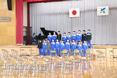 今週月曜日から全校児童での練習が始まりました。全体で卒業式の流れを確認しながら、「起立」「礼」「着席」をしたり、全校での合唱練習を行ったりしています。式担当の先生の指示をよく聞いてしっかりと取り組む姿はとても素晴らしいと思いました。合唱指導の先生からは、声量についてお話がありました。本番に向けて元気できれいなハーモニーを奏でてほしいと思います。