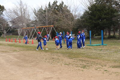 合同 で「ボール遊び」を行いました。内容は、ボールを蹴るものです。今日は円陣パスを中心にボールをコントロールして正確にパスをしたり、真ん中のコーンに当てるゲームを行ったりしました。ゲームではコーンに命中すると大喜びしていました。
