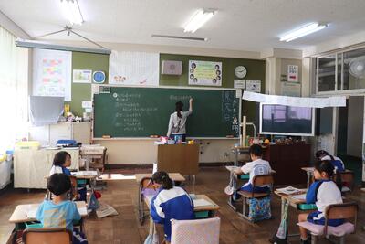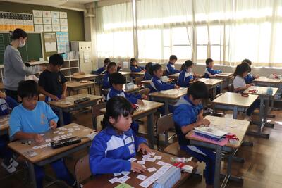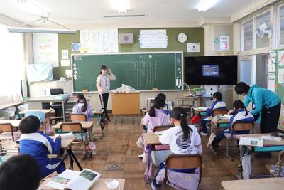 外国語の授業では、始めに映像を使って「駅(station)」や「寺(temple)」などを英語でどのように呼ぶのか、単語と発音を合わせながら紹介していました。昔は中学校で習っていたことを思い出し、小学校で習う事の多さを改めて感じました。