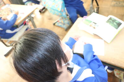 国語の授業では、本を紹介する内容に取り組んでいました。図書室に移動して、自分たちが推薦したい本を選んで、説明を考えてノートに記入していました。それぞれがどんな本を紹介したのか、発表を聞きたいと思います。