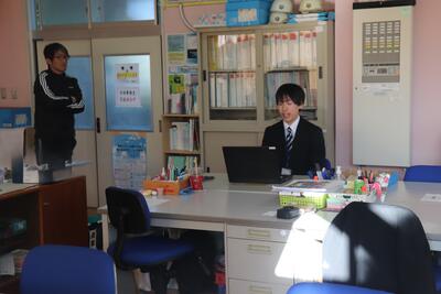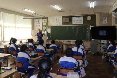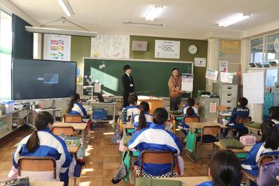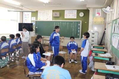 朝の時間、運営委員による元気なあいさつ運動から始まりました。(いいですね!)今日から約1ケ月の間、教育実習の先生が4年生のクラスで勉強をします。朝、Teamsで自己紹介をしました。各クラスともテレビでの自己紹介をよく見ていました。