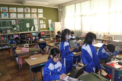 社会の授業では、香取市の文化についてタブレットを使いながら調べ学習を進めていました。香取市の「(側高神社の)ひげなで祭」や「(香取神宮の)神幸祭」など、まだまだ知らなかったことが分かり、意欲的に取り組んでいました。