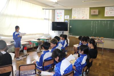 学級活動の時間に、月の反省と目標や学級レクリエーションについての話し合いを行いました。担任の先生のお話をよく聞いて、すすんで発表したり、意見を述べたりする等、積極的に取り組んでいました。