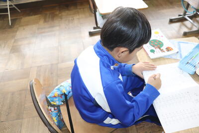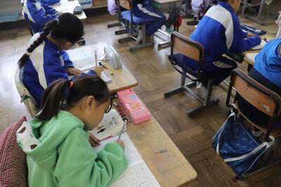 書写の授業では、「登」という文字を書きました。今回で作品を仕上げることになっているらしく、黙々と取り組んでいました。もうすぐ書き初めの時期になりますので、ぜひ良い作品がかけるよう今から頑張って欲しいと思います。