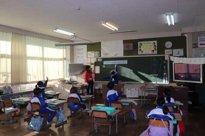 国語の授業では、教科書の「絵を見て話合う」内容でした。児童は、積極的に発表をしていました。好奇心が旺盛で興味関心が高く、すすんで授業に取り組んでいます。この姿勢は、素晴らしいことなので、このまま成長していくのが楽しみです。