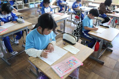 今日の国語の授業は、単元のまとめテストが行われました。このほかに算数の授業においてもテストがあり、問題をよく読んで、みんな集中して取り組んでいました。テストが多い日でしたが、よく頑張っていました。