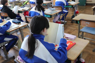 音楽の授業では、校内音楽祭に向けて合唱練習をしていました。「星笛」という曲をピアノ伴奏に合わせて確認しながら行っていました。17日まであと2週間ちょっとです。練習をがんばってよいハーモニーとなることを期待しています。(歌詞は自分たちで作った創作だそうです!)