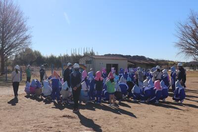 理科の授業では、「光と温度」について学習しました。校庭に出て的に向かって鏡で光を当てて温度計の温度がどのように変化するかを記録しました。次は、真っ黒な紙に光を当てて(焦点)どうなるかを実験します。