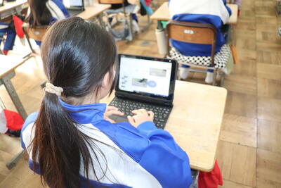 国語の授業では、クラス(学校)の「不思議図鑑」を作成しました。各自で学校に関するテーマを決めて調べ、タブレットで撮った画像を貼り付けたり、文章を打ち込んだりしました。図鑑の完成が楽しみです。