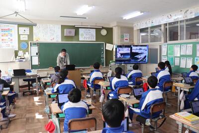 社会の授業では、日本一狭い海峡にかかっている橋の写真を実際に移し、同じくらいの長さである地域の佐原のジャージャー橋と比べながら説明を聞きました。地図帳で見るだけでなく、ICTを活用して実際の映像を見るのは、より具体的でわかりやすいです。
