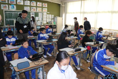 算数の授業では、「小数のわり算のひっ算」を学習しました。教頭先生の丁寧な解説の後、各自で練習問題に取り組んでいました。早く終わった児童は、終わっていない児童のサポートにまわり問題が解けるように応援しました。