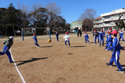 なかよしタイムに卒業プロジェクトの全クラスと交流を図るイベントの一環でレクリエーションを行いました。今回は4年生とグラウンドでドッジボールを行いました。まず、2つの学年を混ぜて2つに分け、6年生は利き腕と反対で投げる等の特別ルールで実施し交流を深めました。