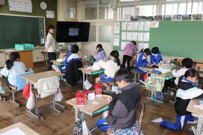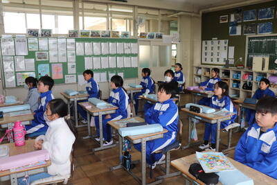 1年生の算数の授業では、復習問題に取り組んでいました。担任の先生が準備してくれたプリントの問題に集中して取り組みました。2年生の学級活動の時間では、レクリエーションについて話し合いました。レクの内容について積極的に意見を発表していました。