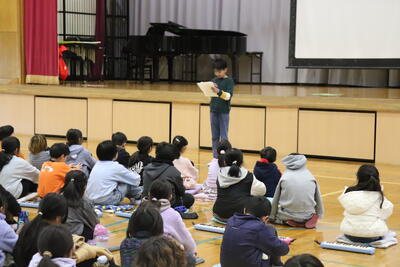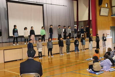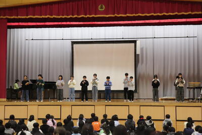 校内音楽会では、児童会運営委員の進行や説明の後、校長先生のお話で「①音楽を楽しむ②こころを合わせる」という2つのお願いがありました。児童はそれぞれの学年ごとに今まで一生懸命練習してきた合唱や合奏(琴等)、ダンス等を発表し、最後に全校合唱(6年生代表児童による指揮と伴奏)までやり遂げることができました。小学生らしい発表が随所に見られ、聴いていた方々から温かい拍手をいただき、うれしそうでした。