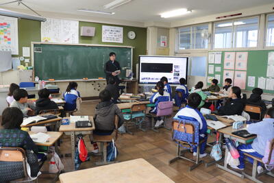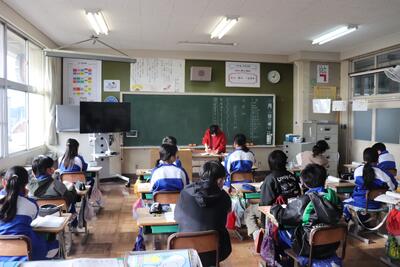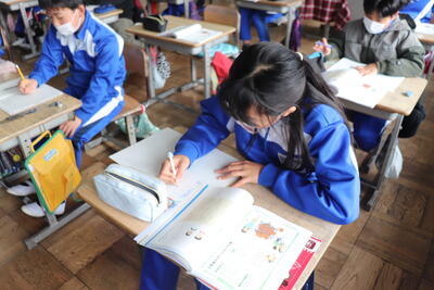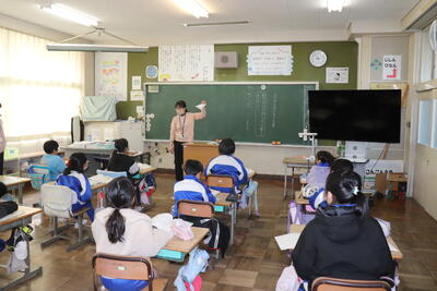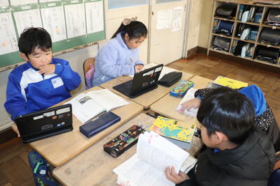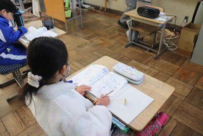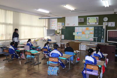 算数の授業では、「小数のわり算のひっ算」を学習しました。教頭先生の丁寧な解説の後、各自で練習問題に取り組んでいました。早く終わった児童は、終わっていない児童のサポートにまわり問題が解けるように応援しました。