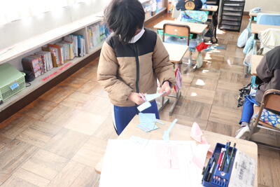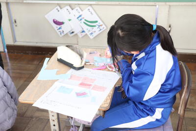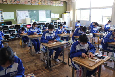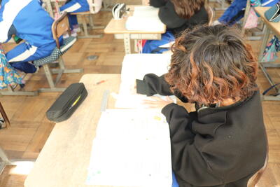 書写の授業では、「平和」という字を書きました。今年度最後の習字ということで、集中して取り組んでいました。完成した作品から担任の先生と児童が相談して良いものを選び、教室前に掲示する予定です。
