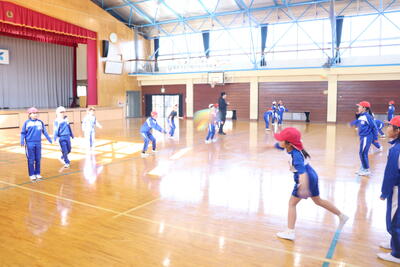 音楽の授業では、リズムに合わせてを演奏することについて学習しました。担任の先生から説明があった後、音楽堂入口付近にならべられた箱からタンバリンやカスタネット等、いろいろな打楽器から自分が演奏したい楽器を選んで、リズムにあわせて演奏に取り組んでいました。