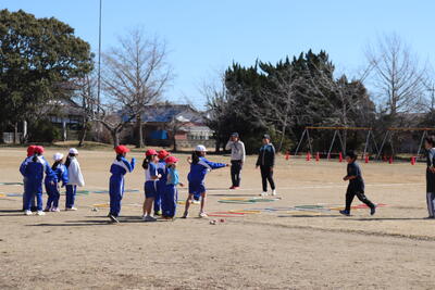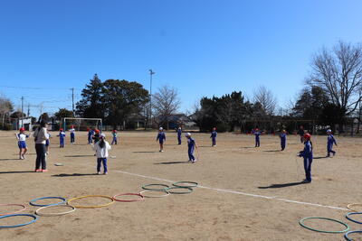 低学年合同体育の授業では、「縄跳び」を行いました。各自でプリントに載っている技の取得に挑戦しました。また、一番長く跳び続けることを競い合いました。「がんばれー」という声がたくさんあがっていました。最後は、輪っかをけんけんで跳ぶなどしてから戻ってくるリレーを行いました。 こちらも応援をしながら元気に取り組んでいてよかったです。