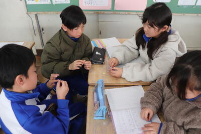 1年生の算数の授業では、復習問題に取り組んでいました。担任の先生が準備してくれたプリントの問題に集中して取り組みました。2年生の学級活動の時間では、レクリエーションについて話し合いました。レクの内容について積極的に意見を発表していました。