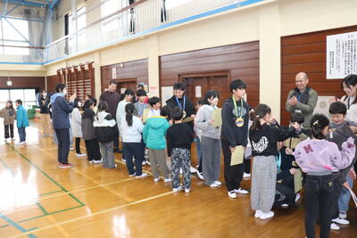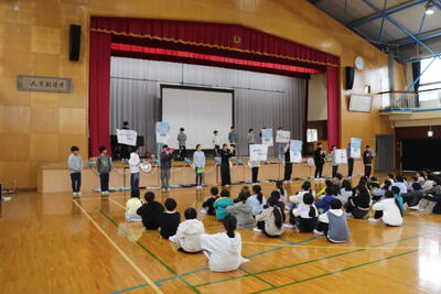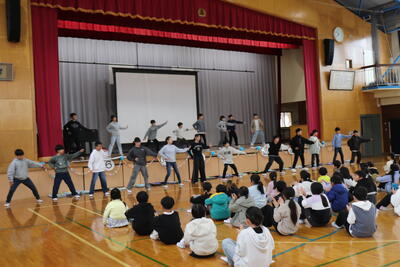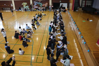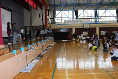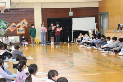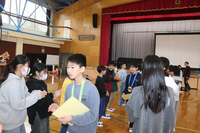 本日、午前中に「6年生を送る会」を行いました。はじめに1・2年生と笑顔で入場し会が始まりました。6年生紹介では、「せーの」という掛け声の後、1人ずつ好きなもの等を紹介をされました。思い出レクでは3つのレクリエーション(①風船バレー②じゃんけん列車③ありがとうポーズ合わせ)を行い、とても盛り上がりました。次に3・4年生より在校生を代表してプレゼント(色紙とお手製メダル)の贈呈がありました。最後は6年生からのダンスとメッセージの発表、さらに全校へのプレゼント(飾りや掲示物、記念品等)が紹介されました。先生方からは映像と歌(ラストに担任の先生からのメッセージ)、最後に校長先生から在校生と卒業生に向けて感謝と思い出の言葉がありました。児童による花道から6年生が退場し会は終わりましたが、本当に心温まる感動的な「6年生を送る会」でした。全校児童全員で素晴らしい会を作ってくれたことに感謝の気持ちでいっぱいです。ありがとうございました。