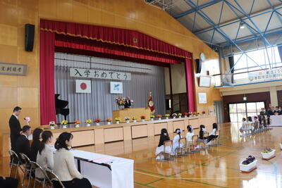 新入生も担任の先生の後に続いて、誓いの言葉では、元気よく「がんばります!」という言葉を述べました。式を通して新入生の態度がとても立派でした。後ろで聞いている在校生も立派な態度で式に臨みました。特に6年生を中心に上学年は、準備や後始末をしっかりと行えました。2年生から6年生のみなさん、新入生にとって在校生の皆さんがお手本になりますので、よろしくお願いします。北っ子1年生のみなさん、いよいよ明日から小学校生活のスタートです。わからないことあったらお兄さんやお姉さん、学校の先生に何でも聞いてくださいね。