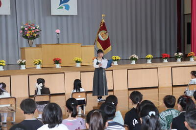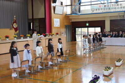 本日、11名の新入生が入学しました。入場から担任の先生のお話をよく聞いてしっかりとした態度で、よくできました。素晴らしかったです!!校長先生や教育委員会の方、来賓(PTA会長)の方より、新入生に向けてお祝いの言葉をいただきました。お話をよく聞いていて、返事やあいさつがよくできました!在校生代表である児童会長から歓迎の言葉が贈られました。