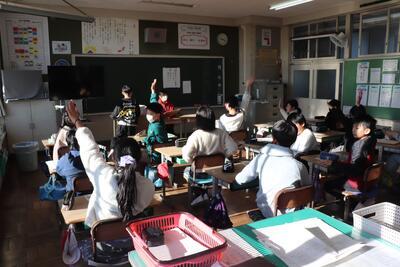 学級活動の時間では、一人一人が3つのクイズ(冬休みに実際にあった出来事を2つとなかった出来事1つ)を出し合って、なかった出来事をあてることに挑戦しました。(ちなみに校長先生にも数名がクイズを出してくれましたが、ほとんど当てることができませんでした)クリスマスからお正月にかけて様々な思い出ができたことが伝わってきました。