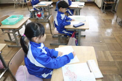 国語の授業では、「感謝の手紙」ということで、担任の先生が用意してくれたプリントに、児童が感謝を伝えたい人に向けた手紙を書いていました。手紙が完成したらそれぞれの人に送るそうです。いただいた人は、きっと喜んでくれるでしょう。