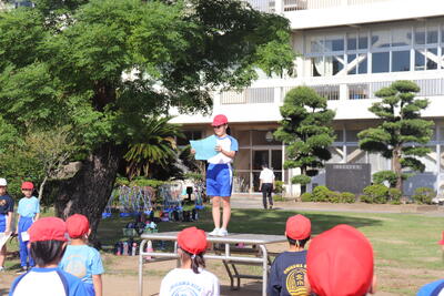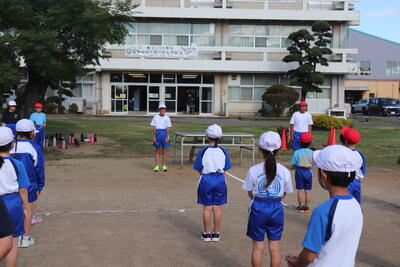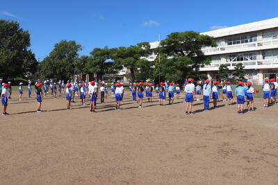 はじめに紅組と白組の応援団長より挨拶がありました。開閉会式で役割のある児童が動きの確認をしました。北小の児童は、きちんとした姿勢で練習に臨んでいてすばらしかったです。