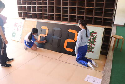 5、6年生による各係ごとに打合せをしました。係は、応援会場、用具、放送、記録、招集誘導、出発、決勝賞品の7つです。係によっては、実際に場所を移動して確認をしていました。
