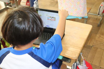 朝の様子です。運動会練習のための動画を写したタブレットを持ち帰って、お家の方に見てもらうための説明を担任の先生から聞きました。この週末、ぜひ親子で練習をしてほしいと思います。