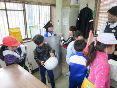 11月11日(火)2年生が校外学習に行きました 投稿日時 : 12:00 小見川北小学校管理者 【駐在所訪問】 何時も地域の安全を守ってくださっている駐在所へ、2年生が2回に分けて校外学習で訪問しました。お仕事の内容を質問し、色々なことを教えていただきました。児童は、警察官の方の帽子や警棒等の装備品に関心が高く、実際に身に付けたり、手に取ったりしながら見せてもらい、興味をもって学ぶ事ができてとてもうれしそうでした。お忙しい中、ご対応していただき、ありがとうございました。
