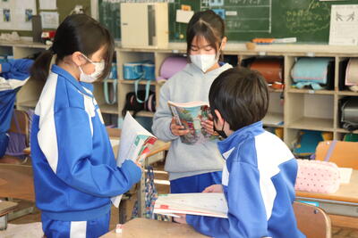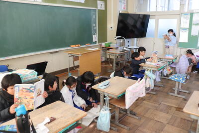 国語の授業では、「かさこじぞう」の発表練習を行いました。1年生に発表を聞いてもらうために、立ち位置や読み方など、それぞれの役割に応じて取り組んでいました。ナレーションも含め、役になりきっていてとても上手でした。